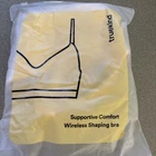 This Truekind wireless shaping bra offers supportive comfort with its bra strap and wireless underwire type. The beige color and solid pattern make it a stylish addition to your lingerie collection. The bra is made of a blended fabric of polyester, nylon, and spandex, providing a comfortable and snug fit. The bra features comfort straps and accents that add to its style. It is available in size 2XL and is suitable for regular size types. This wirefree bra is perfect for women who want to feel comfortable and supported without sacrificing style.