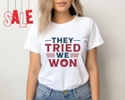 Trump Won Again After Election T-Shirt F79208 1. PRODUCT INFORMATION Classic Unisex Crewneck T-shirt A classic unisex t-shirt that works well with any outfit. Made of a heavier cotton with a double-stitched neckline and sleeves. - Rolled-forward shoulders for a better fit - Stylish fitted sleeve - Seamless double-needle collar - Taped neck and shoulders for durability - Tubular fit for minimal torque Material - Solid colors are 100% ring-spun cotton - Heather colors are 65% polyester, 35% ring-spung cotton - Fiber content may vary by color Please note: - Keep in mind that colors may differ depending on computer settings - We WON'T take any responsibility for INCORRECT address, so please check your address carefully before checkout. 2. SIZE GUIDE Size chart - Imperial (inches) S M L XL 2XL 3XL 4XL 5XL A) Length 27 ⅞ '' 29 '' 29 ⅞ '' 31'' 31 ⅞ '' 33'' 34’’ 35’’ B) Half Chest 18'' 20'' 22'' 24 '' 25 ⅞ '' 27 ⅞ '' 28 ⅞ '' 30 ⅞ '' A) Length Place the end of the tape beside the collar at the top of the shirt (Highest Point Shoulder). Pull the tape measure to the bottom of the shirt. B) Half Chest Lay the garment down on a flat surface and measure it from left to right across the chest, about 2cm below the arms. Measurements are provided by suppliers and garments may run smaller or larger with a difference of +/- 2.5cm (1 in). 3. CARE INSTRUCTIONS - Machine wash: warm (max 40C or 105F) - Non-chlorine: bleach as needed - Tumble dry: Low - Do not iron - Do not dryclean. 4. SHIPPING AND HANDLING - Print and ship from USA - Domestic shipping: 3 – 7 Business days - International shipping: 10 – 20 Business days Please be patient when awaiting shipment (When tracking is AVAILABLE) 5. RETURN Exchange or refund items are unacceptable since we create each shirt to your specifications unless an item you received has a major problem in below: - Design errors/wrong order: Completely wrong design compared to information provided by customers on Ebay. - Bad quality: blurry image/print. - Significantly different from the description. - Defective/Damaged due to the fault of our factory or the carrier - Order was sent to the wrong address Have a design, color, sizes in mind that you did not find? Message us about custom orders! We enjoy working with others and using our craft to make them happy.