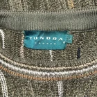 Tundra Canada Vintage Sweater Men's size large Excellent vintage condition, minor wear Colour: Green with brown/tan/ivory details DETAILS This cool vintage sweater has all the Coogi vintage 90s vibes! The green, brown, tan and ivory tones are the perfect blend for your neutral wardrobe. The velour fabric has depth and softness and begs to be touched. The close-ups highlight the artistry of this beautiful sweater. Round neckline Cuffed hem & sleeve hems Really cool textured knit Cotton/acrylic blend Approx measurements (flat): Pit-to-pit: 23.5" Shoulder-to-hem length: 29"
