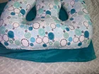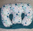 As seen on Shark Tank Pillow is in like new condition Comes with carrying bag 6 in 1 pregnancy pillow/feeding/tummy time/support Nice geometric design on pillow cover Measures approximately 34” wide x 24” tall x 10” thick See photos, ask questions! Thanks for looking!!!