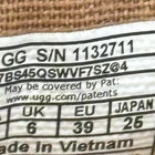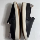Retail $100.00 Experience the sleek elegance of UGG's black slip-on loafers, featuring a smooth leather exterior and a contrasting white rubber sole. Designed for effortless wear, these minimalist shoes offer a comfortable fit with their rounded toe and low profile. Perfect for casual outings, they blend style and comfort seamlessly Worn Once Didn't Fit