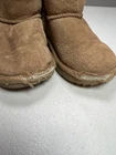 Dress your little one in ultimate comfort and charming style with these UGG Mini Bailey Bow II boots for toddlers. These well-known UGG boots feature a plush sheepskin lining, providing exceptional warmth and softness for tiny feet. The classic silhouette is elevated with sweet satin bows at the back, adding a touch of adorable detail that makes these boots a favorite for any young child. Crafted with a durable suede upper, these UGG Mini Bailey Bow II boots are designed for everyday adventures. The sturdy sole offers support, making them suitable for active toddlers exploring their world. Easy to pull on and off, they are a practical choice for parents and a cozy delight for kids, suitable for chilly days or simply adding a cozy touch to any outfit. This previously owned pair is in good condition, offering the well-regarded UGG comfort and style at a good price. These UGG Mini Bailey Bow II boots are a timeless addition to any toddler's wardrobe, providing both warmth and an undeniably cute aesthetic.