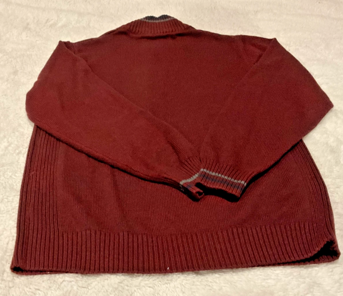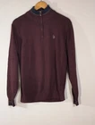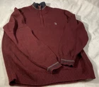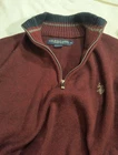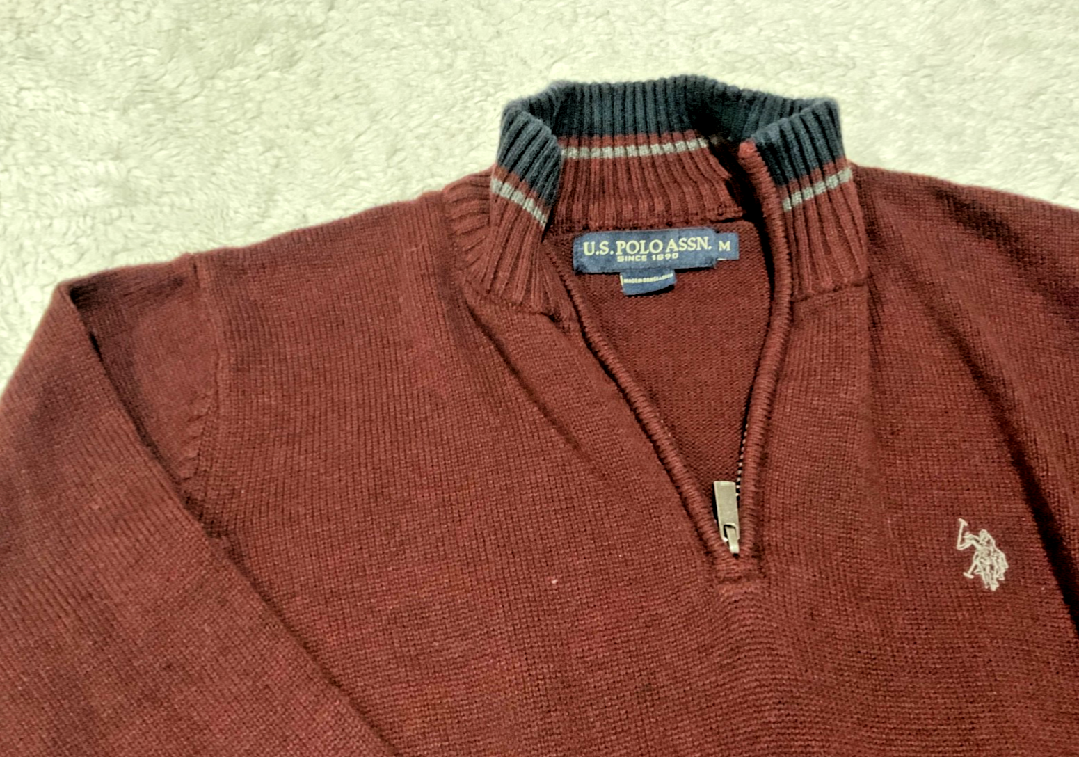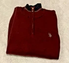 The U.S. Polo Assn. Men’s Quarter Zip Sweater in Burgundy Red is a stylish and comfortable addition to any man's wardrobe. Made from a blend of cotton and acrylic, this sweater features long sleeves and a regular fit for a classic look. The pullover style with a logo accent adds a touch of sophistication, perfect for casual occasions. Available in size M, this sweater is ideal for those looking for a versatile and high-quality piece for their everyday wear.