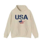 Description Introducing the Kyloug Fast Fashion USA Flag Text Printed Classic Fit Hoodie for Men, a must-have addition to any wardrobe that seamlessly blends style, comfort, and patriotism. This hoodie is crafted from a premium cotton-polyester blend, offering a soft, breathable feel that ensures all-day comfort, whether you're lounging at home or heading out for an adventure. The classic fit design provides a relaxed silhouette, making it perfect for layering over your favorite t-shirt or under a stylish jacket. The standout feature of this hoodie is the bold USA flag text print, which adds a touch of national pride and makes a striking statement. Its vibrant colors are fade-resistant, ensuring that the design remains vivid and eye-catching through numerous washes. The hoodie is equipped with a spacious kangaroo pocket, perfect for keeping your hands warm or storing small essentials, and an adjustable drawstring hood that provides extra protection against the elements. Ribbed cuffs and hem enhance the fit and help retain warmth, making it ideal for cooler weather. Whether you're celebrating a national holiday, supporting your favorite sports team, or simply embracing your love for the USA, this Kyloug hoodie is a versatile and stylish choice. Available in a range of sizes, this hoodie is designed to suit men of all shapes, ensuring a perfect fit and ultimate comfort for everyone. Elevate your casual wardrobe with this timeless piece that embodies both fashion and function. . Overview; This heavy blend hooded sweatshirt is relaxation itself. Made with a thick blend of cotton and polyester, it feels plush, soft and warm, a perfect choice for any cold day. In the front, the spacious kangaroo pocket adds daily practicality while the hood's drawstring is the same color as the base sweater for extra style points. Fabric; Made with a medium-heavy fabric (8.0 oz/yd² (271 g/m²)) that consists of 50% cotton and 50% polyester for that cozy feel and warmth you need in a hoodie. Fit; The classic fit along with the pouch pocket and the tear-away label make for a highly comfortable, scratch-free wearing experience. The color-matched draw cord and the double-lined hood add a stylish flair and durability that tie everything together. Fabric blends; Heather Sport colors - 60% polyester, 40% cotton.