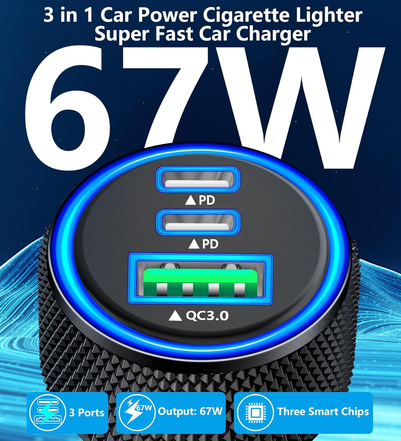 USB C Car Charger, 2Pack 3-Port 67W Dual PD USB-C&USB-A Car Power Cigarette Lighter USB Charger 3 in 1 PD/QC Type C Fast Car Charge for iPhone 17 17 Pro Max 16 15 14 13 12/Galaxy S25 S24/Pixel Upgrade your daily routine with USB C Car Charger, 2Pack 3-Port 67W Dual PD USB-C&USB-A Car Power Cigarette Lighter USB Charger 3 in 1 PD/QC Type C Fast Car Charge for iPhone 17 17 Pro Max 16 15 14 13 12/Galaxy S25 S24/Pixel — premium build for reliable performance and long-lasting value. Enjoy fast handling, friendly support, and a risk-free purchase backed by easy returns. Trusted seller with excellent feedback Popular item — often sells out quickly 30-day returns, no questions asked Key Benefits Feel the quality: durable materials and clean finish Save time: quick setup and easy everyday use Peace of mind: hassle-free support via eBay Messages Smart value: excellent price–performance for home, office, hobby, or professional use Item Specifics Item model number A58M Whats in the box 2Pack 3-Port 67W Dual USB-C+USB-A Car Power Cigarette Lighter 3 in 1 PD&QC3.0 Type-C Car Charger Fast Charging Adapter. Total USB Ports 3 Connectivity technologies 2PD3.0+QC3.0, Dual USB-C+USB-A, USB Color Titanium Alloy Black Amperage 6 Amps Connector Type 2PD3.0+QC3.0, Dual USB-C+USB-A, USB-C, Type-C, USB, USB-A Other display features CE Compatible Devices function(f) {var _np=(window.P._namespace("DetailPageProductOverviewTemplatesJava"));if(_np.guardFatal){_np.guardFatal(f)(_np);}else{f(_np);}}(function(P) { P.when('A').execute(function(A){ A.on('a:truncate:po-attribute-truncate-2:updated', function(data) { var isTruncated = !data.truncateInstance.getIfTextFits(); var seeMoreElement = document.getElementById('po-attribute-see-more-id-2'); if(seeMoreElement) { seeMoreElement.style.display = isTruncated ? '' : 'none'; } }) }); })); iPhone 17/17 Air/17 Pro/17 Pro Max/iPhone 16/16 Plus/16 Pro/16 Pro Max/15/15 Plus/15 Pro/15 Pro Max/14/14 Plus/14 Pro/14 Pro Max/13/13 Mini/13 Pro/13 Pro Max/12/12 Mini/12 Pro/12 Pro Max/SE 2020/11/11 Pro/11 Pro Max/XR/XS/XS Max/X 8 7 6 5; iPad Mini/Air/Pro; Airpods; MacBook Air/Pro; Galaxy S25/S24/S23/S22/S21/S20/S10/Note 20/Note 10; Pixel; Moto. Cameras, GPS, Power Banks, Driving Recorders, Drone, All Electronic Devices, etc. See more Item Weight 2.99 ounces Input Voltage 12 Volts Special features MFi Certified Chipset, Original USB-C Terminal, 9X Fast Car Charger, Intelligent Power Distribution, Embedded in-Vehicle Smart Chip, Built-in High-Tech Chipset, 3 in 1 Car Charger, 67W USB-C Car Power Cigarette Lighter, 67W Dual USB-C&USB-A Smart Power Fast Car Charger, Intelligent Power Management Chip, 67W Type-C Super Fast Car Charging, 56Ω Pull Up Protection Resistor, Overvoltage Protection, Surge Protection, Battery Protector, Automatic Chip Recognition Functions, Dynamic Temperature Sensor, UL/ETL/CE/FCC Certified, Built-in E-Marker Chipset, Integrated Superconductor Material, Overload Protection to Enhanced Safe Charging, 3-Port PD&QC3.0 Power Cigarette Lighter Fast Car Charger, All Titanium Zinc Alloy Fast Car Charger, Flush Fit Car Charger, Dual Soft Blue LED Light, Mini Fast Car Charger, Metal Car Charger, Fast Charger Metal Cigarette Lighter Size 3 IN 1 Special Feature function(f) {var _np=(window.P._namespace("DetailPageProductOverviewTemplatesJava"));if(_np.guardFatal){_np.guardFatal(f)(_np);}else{f(_np);}}(function(P) { P.when('A').execute(function(A){ A.on('a:truncate:po-attribute-truncate-5:updated', function(data) { var isTruncated = !data.truncateInstance.getIfTextFits(); var seeMoreElement = document.getElementById('po-attribute-see-more-id-5'); if(seeMoreElement) { seeMoreElement.style.display = isTruncated ? '' : 'none'; } }) }); })); MFi Certified Chipset, Original USB-C Terminal, 9X Fast Car Charger, Intelligent Power Distribution, Embedded in-Vehicle Smart Chip, Built-in High-Tech Chipset, 3 in 1 Car Charger, 67W USB-C Car Power Cigarette Lighter, 67W Dual USB-C&USB-A Smart Power Fast Car Charger, Intelligent Power Management Chip, 67W Type-C Super Fast Car Charging, 56Ω Pull Up Protection Resistor, Overvoltage Protection, Surge Protection, Battery Protector, Automatic Chip Recognition Functions, Dynamic Temperature Sensor, UL/ETL/CE/FCC Certified, Built-in E-Marker Chipset, Integrated Superconductor Material, Overload Protection to Enhanced Safe Charging, 3-Port PD&QC3.0 Power Cigarette Lighter Fast Car Charger, All Titanium Zinc Alloy Fast Car Charger, Flush Fit Car Charger, Dual Soft Blue LED Light, Mini Fast Car Charger, Metal Car Charger, Fast Charger Metal Cigarette Lighter See more Package Dimensions 6.38 x 4.06 x 1.34 inches Compatible Phone Models function(f) {var _np=(window.P._namespace("DetailPageProductOverviewTemplatesJava"));if(_np.guardFatal){_np.guardFatal(f)(_np);}else{f(_np);}}(function(P) { P.when('A').execute(function(A){ A.on('a:truncate:po-attribute-truncate-3:updated', function(data) { var isTruncated = !data.truncateInstance.getIfTextFits(); var seeMoreElement = document.getElementById('po-attribute-see-more-id-3'); if(seeMoreElement) { seeMoreElement.style.display = isTruncated ? '' : 'none'; } }) }); })); iPhone 17/17 Air/17 Pro/17 Pro Max/iPhone 16/16 Plus/16 Pro/16 Pro Max/15/15 Plus/15 Pro/15 Pro Max/14/14 Plus/14 Pro/14 Pro Max/13/13 Mini/13 Pro/13 Pro Max/12/12 Mini/12 Pro/12 Pro Max/SE 2020/11/11 Pro/11 Pro Max/XR/XS/XS Max/X 8 7 6 5; iPad Mini/Air/Pro; Airpods; MacBook Air/Pro; Galaxy S25/S24/S23/S22/S21/S20/S10/Note 20/Note 10; Pixel; Moto. Cameras, GPS, Power Banks, Driving Recorders, Drone, All Electronic Devices, etc. See more Included Components function(f) {var _np=(window.P._namespace("DetailPageProductOverviewTemplatesJava"));if(_np.guardFatal){_np.guardFatal(f)(_np);}else{f(_np);}}(function(P) { P.when('A').execute(function(A){ A.on('a:truncate:po-attribute-truncate-4:updated', function(data) { var isTruncated = !data.truncateInstance.getIfTextFits(); var seeMoreElement = document.getElementById('po-attribute-see-more-i