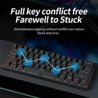 • RGB Backlit: The keyboard features an RGB backlit that adds a touch of style to your gaming setup. • Hot Swappable Switches : The switches are hot swappable, allowing you to easily replace them without soldering. • Detachable Cable: The detachable cable makes it easy to use the keyboard with different devices and provides flexibility. • 61 Keys : With 61 keys, the keyboard provides a full range of functionality for efficient and comfortable typing. MK61 has a compact 61 key. Small and portable. There are also pluggable cables. Hot-Swappable Red Switches: Most quiet mechanical switch, linear and soft key travel makes every click easy to register. Hot-swappable with other Redragon switches. Made to last with switches rated for 50 million keypresses. Dedicated for FPS Gamer: Place the keyboard proper straight on your desktop and no more crooked way for mouse space saving, your mouse will never hit the keyboard any more. Enjoy waving the mouse without any worries and go get that Team Kills. Product parameters: Brand: MUCAI Key position: 61 keys (60%) Switch type: red switch Color: Multiple colors Keyboard color: black/white/blue Interface: Typec Fashion: Single fashion FQA Q:Can this keyboard use Bluetooth? A:This cannot use Bluetooth. Q:Can I replace the switch inside the keyboard myself? A:No problem Q:Can the characters on the keyboard be changed to other languages? A:The characters on the keyboard default to English. There are currently no other languages available.