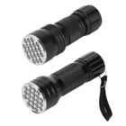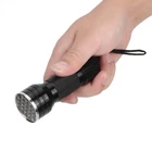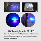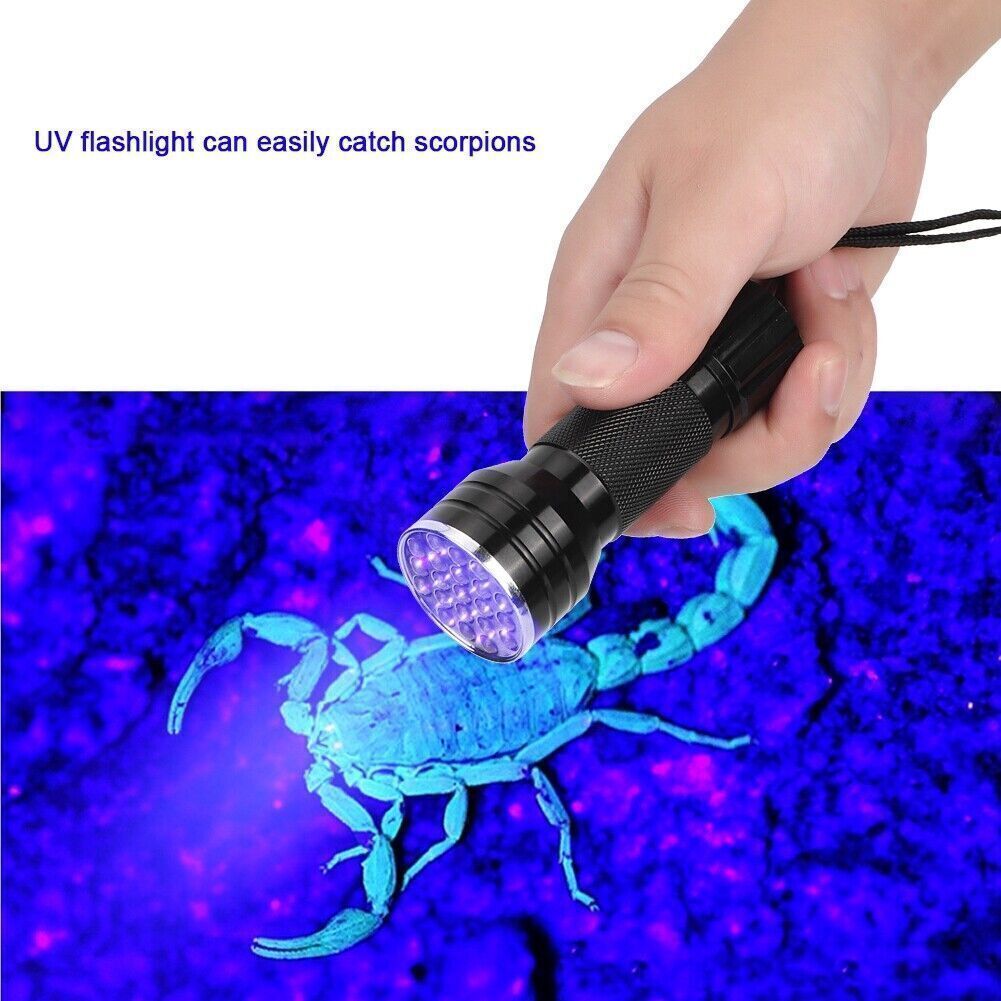 Feature: 1. UV flashlight with 21 LED, it can check carpet stains left by cats, dogs and other small animals. Fluorescent agents for cosmetics, clothes, baby products, toiletries, etc. 2. UV flashlight can easily catch scorpions. Emit 395nm wavelength and hunt scorpions and minerals. 3. High-quality aluminum alloy, waterproof, durable and easy to carry. Exquisite anti-skid handle, safe and reliable. 4. Small and portable, easy to use, long time heat dissipation. 5. Suitable for checking notes, credit cards, fluorescent ink (invisible ink), broken glass, even the crime scene, suitable for outdoor activities. Specification: Features: UV flashlight with 21 LED, it can check carpet stains left by cats, dogs and other small animals. Fluorescent agents for cosmetics, clothes, baby products, toiletries, etc. UV flashlight can easily catch scorpions. Emit 395nm wavelength and hunt scorpions and minerals. High-quality aluminum alloy, waterproof, durable and easy to carry. Exquisite anti-skid handle, safe and reliable. Small and portable, easy to use, long time heat dissipation. Suitable for checking notes, credit cards, fluorescent ink (invisible ink), broken glass, even the crime scene, suitable for outdoor activities. Specification: Condition: 100% Brand New Material: Aluminum alloy Color: black Length: approx. 10mm/3.9inch (with strap) approx. 9.5cm/3.7inch (without strap) LED chip: LED 395nm(UV) Power: 390-395 nm LED quantity: 21 Battery: 3 x AAA battery (Not Included) Lifespan: 100000H Waterproof: IPX-4 : no Package List: 1 x Flashlight