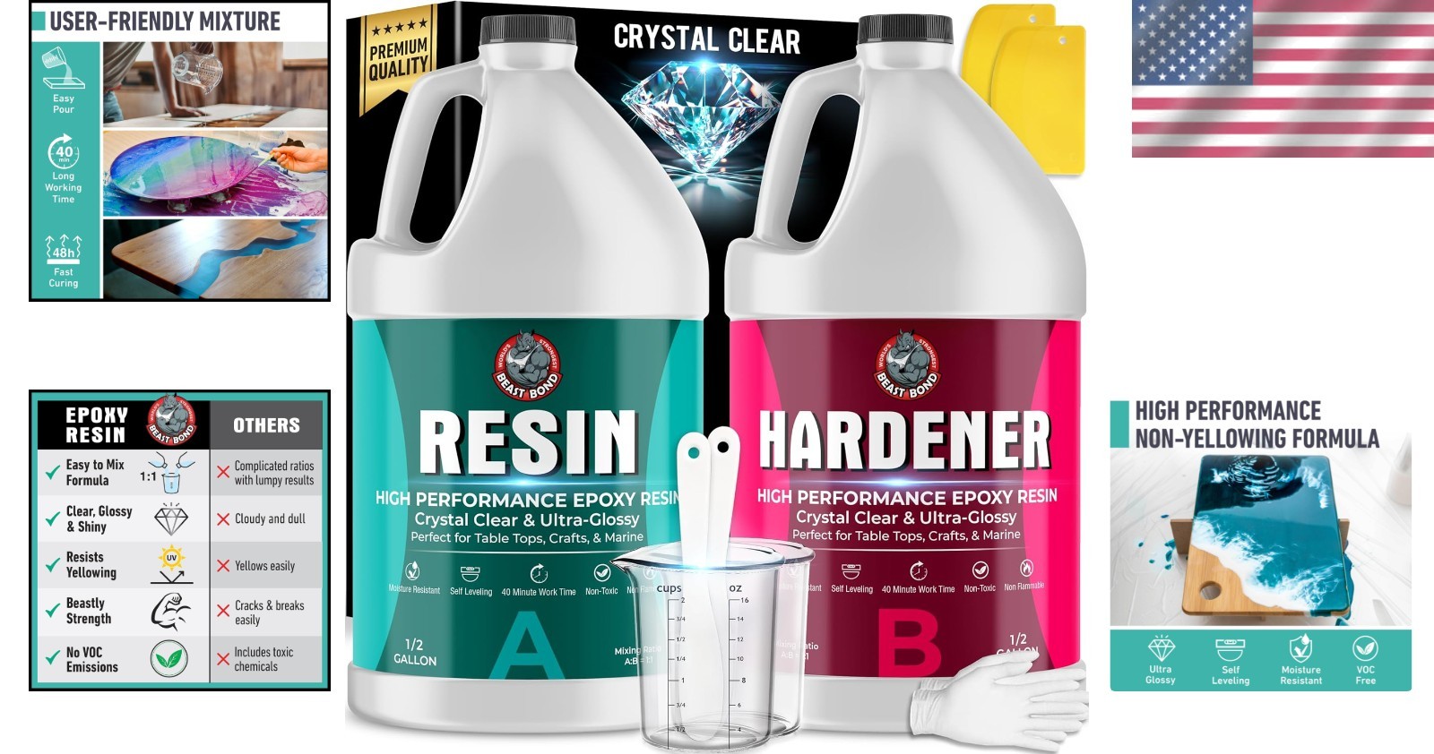 Self-Leveling 1 Gallon Epoxy Resin - UV & Impact Resistant for Durable Crafting ‹ › ‹ › ‹ › ‹ › ‹ › ‹ › ‹ › ‹ › ‹ › ‹ › ‹ › Self-Leveling 1 Gallon Epoxy Resin UV & Impact Resistant for Durable Crafting Features: Superior clarity with a crystal clear, ultra-glossy finish - no imperfections or polishing needed. Scratch-resistant and repels moisture, ensuring longevity and clarity without yellowing. Effortless, bubble-free application with a self-leveling formula. Simple 1:1 mix ratio, providing 40 minutes of working time, and cures within 24-48 hours. Complete crafting kit includes everything needed for resin projects: 0.5-gallon resin and 0.5-gallon hardener 2 silicone stirrers, 2 spatulas, 2 measuring cups, and gloves Comprehensive guide for hassle-free preparation Non-toxic and non-flammable, compliant with ASTM D-4236 for safe and comfortable use. Benefits: Achieve a perfect, glass-smooth finish on tables, crafts, and more. Ideal for artists seeking perfection in their creations. Easy to use for both beginners and experienced crafters. Safety component allows for worry-free crafting in any environment. Designed to help you realize your creative vision with professional results. Why choose our Self-Leveling Epoxy Resin? Enhance your crafting experience with our Self-Leveling 1 Gallon Epoxy Resin. This premium epoxy not only meets your creative needs with its superior clarity and gloss but also provides a reliable, bubble-free application that elevates your projects to a professional standard. With included tools and a user-friendly formula, every artist can create stunning, resilient pieces while maintaining safety and comfort. Trust in our exceptional quality and embark on your crafting journey today! Whether for large projects or delicate designs, our epoxy resin promises durability and perfection. Order now to transform your artistry into a masterpiece! Shipping Free & Fast Shipping - We offer free shipping to most of the USA with a normal delivery time of 3-10 businessdays. However, due to various situations, additional delivery time (up to 3 weeks) may be required for some items. Alternative Carriers - We may use alternative carriers (e.g. USPS, FedEx, UPS, etc.) to ensure your package arrives safely and on time. Due to the use of multiple carriers, we are unable to provide a tracking number automatically. Handling Time - Orders are processed and shipped within 1-5 business days of receiving cleared payment. Shipping Restrictions - Shipping to Alaska, Hawaii, Puerto Rico, Guam, and other US territories may incur shipping charges or delivery restrictions. Please contact us before ordering, or your order can be refunded/cancelled. State Restrictions - There may be restrictions based on your state of purchase. For example, certain items may not be shipped to California due to state regulations. Contact for Tracking Updates - If you require tracking updates or have any concerns about the delivery of your order, please feel free to contact us, and we will be happy to assist you. Return Please see our ebay return policy. We do not accept return on most products. This is to avoid customers mis-using ebay returns. All sales are final. Please be sure to check the return policy listed at the top of the listing. In rare cases, we may accept returns, if the buyer pays both ways shipping and 20% restocking fee. If you are un-sure of return policy of a particular item, please ask before buying. Payment We accept all major credit cards, PayPal, and Apple Pay for your convenience. Your payment information is secure and encrypted to ensure a safe and seamless transaction. Please complete your payment within 3 days of purchase to avoid any delays in shipping. Feedback Your feedback is extremely important to us. We strive to provide the best products and customer service possible. If you are satisfied with your purchase, please take a moment to leave us a positive review. If you have any concerns or issues with your order, please contact us before leaving negative feedback. We are committed to resolving any problems and ensuring your satisfaction. Contact Us If you have any questions or concerns, please feel free to reach out to our customer support team. You can contact us through the eBay messaging system. We are available Monday to Friday, 9:00 am to 5:00 pm EST, and we will do our best to respond to your inquiry within 24 hours. Buy it now and enjoy a pleasant shopping experience! UPC: Not Set Model: Not Set MPN: Not Set Unit Quantity: 1 Color: Clear Brand: Unbranded Country/Region of Manufacture: Not Set Unit Type: gal Handmade: Not Set