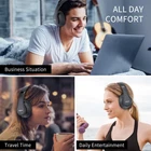 HIGH FIDELITY AUDIO - Bluetooth headphones deliver crystal crisp highs, balanced mids and powerful bass through 40mm acoustic stereo drivers. Equipped with 6 EQ modes, switch according to different music the balanced sound. You can enjoy high-quality crystal clear stereo sound with our over-ear headphones. STRONG BLUETOOTH 5.3 TECH - The wireless Bluetooth headphones are compatible with all Bluetooth-enabled devices. Advanced Bluetooth 5.2 technology provides a more stable, faster Bluetooth connection and can be paired with two devices at once and seamlessly switch between them - meaning you can quickly switch from listening to a playlist on your phone to taking a conference call on your laptop. UP TO 65 HOURS PLAYTIME - wireless headphones deliver up to 65 hours playtime on a single charge. A quick 10-minute charge gives you up to 4 hours of playtime. This wireless headset can also easily connect to other non-Bluetooth devices via a 3.5 mm audio cable, plug in the included audio cable to listen for even longer in wired mode. LIGHTWEIGHT COMFORT - The ear cups are made of acoustically engineered memory foam that provides pillow-like softness while listening. Adjustable metal slider headband and rotatable earmuffs can easily fit any head shape. No matter whether you are doing online class, travel or workout, you’ll almost forget you’re wearing them-- even after hours of listening. CLEAR CONVERSATIONS - Bluetooth headset with built-in microphone has clear voice effect, compatible with smartphones for hands-free calling and use with voice assistants. [Note: Microphone works in wireless/Bluetooth mode only]-- 30 days free return and 12 months warranty is our guarantee, please feel free to contact us if you have any inquiries during use.