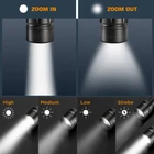 Shockingly Bright 600 Lumens&Long-Lasting: The flashlight emits a maximum output up to 600 lumens that will flood the length of one football field with a maximum beam distance of 590 feet. Providing long-lasting runtime up to 75 hours(low mode)of constant brightness by 3C Alkaline batteries Zoomable & 4 Light Modes: This handheld flashlight has 4 lighting modes: High/Medium/Low/Strobe. You can stretch the head of the flashlight to adjust the focus, and freely choose the spotlight for remote viewing and the floodlight for large-area lighting. It is ideal for camping, hiking, climbing, running, night walking, emergencies, or general household use. Durable Construction & High-Performance Lamp Beads: The biggest highlight of our flashlight---Equipped with P8 lamp beads, high-power LEDs with high performance, superior robustness and long lifetime, high luminous efficiency, and it has good heat dissipation. Suitable for outdoor, camping, and adventure, as well as for home, and garden lighting. Virtually Indestructible: The aluminum body with a knurled finish gives it exceptional heavy-duty characteristics and dust resistance. With an IPX4 waterproof and impact resistance tested from 4-15/16 FT (1.5 meters), it makes this the perfect outdoor professional flashlight. Specification: Weight: 225g, Length: 8.4"/9". Package includes: 1* LED Flashlight with lanyard ; 3* C Batteries; 1* User guide.