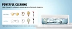 Powerful Home Ultrasonic Cleaner ultrasonic cleaner boasts potent cleaning ability, a spacious design, versatile applications, smart operation, and high-quality materials. It effortlessly tackles dirt, providing long-lasting cleanliness in one cycle. Whether for household users or professionals, it's a reliable choice. Suitable for cleaning various items, including jewelry, glasses, watches, and utensils, the ultrasonic cleaner meets the diverse cleaning needs of both household and commercial users. With a simple rotary knob button and four selectable modes (other mode: 360s, watch mode: 300s, jewelry mode: 240s, glasses mode: 180s), cleaning becomes effortlessly convenient. Our ultrasonic jewelry cleaner utilizes high-frequency oscillation and tiny bubbles to effortlessly break down dirt, ensuring a thorough cleaning of jewelry. Experience the ultimate cleaning results, making your jewelry shine brilliantly. Our portable ultrasonic cleaner with a compact size offers an extraordinary cleaning experience at home or during travels. Features & Details Powerful Cleaning Capability: The high-frequency oscillation signals and tiny bubbles make our jewelry cleaner ultrasonic machine effortlessly disperses and destroys dirt. Not only does it spotless surfaces, but it also eliminates deep-seated stains, bringing items back to original luster. Versatile Applications: Four modes are provided (glasses mode: 180s, jewelry mode: 240s, watch mode: 300s, other mode: 360s). The ultrasonic cleaner has a wide range of applications, from glasses (non-coated), office supplies, toothbrushes, makeup brushes, jewelry, metal/ceramic utensils, dentures to watches. Whether you're a household user or a professional, it meets the cleaning needs of various items. Easy Operation: Equipped with touch buttons, the sonic jewelry cleaner is simple and straightforward to operate. During the cleaning, there's no need for complex settings—just choose the appropriate mode. Even those without cleaning experience can easily enjoy efficient cleaning results. Portable Design: Our jewelry cleaner machine with a compact size, allows you to enjoy professional-level cleaning at home or while traveling without need of visiting jewelry or repair shops. Say goodbye to concerns about cleaning jewelry and other small items. High-Quality & Durable: The interior tank is made of durable 304 stainless steel, which is rust-proof and corrosion-proof. Additionally, the including cleaning basket secures small parts, preventing items from moving and ensuring cleaning results.