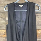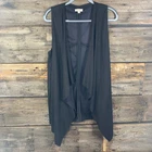 Umgee Black Open Front Sleeveless Asymmetrical Waterfall Cardigan Vest Size: Small 55% Cotton 45% Polyester *Does have a mark on left side of vest as seen in pictures. When vest is worn the spot can not be seen Pit to pit- 17.5" Additional measurements available upon request All measurements are approximate All measurements are taken with item laying flat Double bust, waist, & hip for measurement all the way around Colors may differ based on others computer/phone/etc settings All pre owned items have been washed and steamed All pre owned items have been looked over for flaws and will be noted in listing