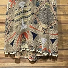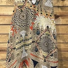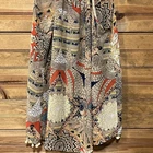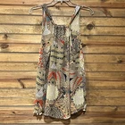 Add a touch of bohemian chic to your wardrobe with this beautiful UMGEE Women's Tank Top size small. The feather abstract pattern in brown, blue, yellow, white, and black hues is perfect for a variety of occasions, from travel to the beach or pool. The V-neckline and wide straps provide a comfortable fit, while the pompom front fringe accents add a fun and playful touch. Crafted from a soft and breathable blend of polyester and cotton, this tunic-style tank top is easy to care for with a simple hand wash. The sheer and collarless design makes it a versatile piece that can be dressed up or down. Perfect for the summer and spring seasons, this UMGEE Women's Tank Top is a must-have addition to your collection. Pre-loved in great condition. Please view all photos. Thanks for shopping! PTP - 18”, front length - 22”, back length - 25”.