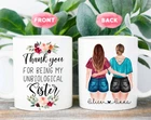 Unbiological Sister Mug Personalized Best Friend Mug Friendship Gift Besties Mug Product Details.. This high quality 11oz. ceramic white mug has a premium hard coat that provides crisp and vibrant color reproduction sure to last for years. Perfect for all hot & cold beverages. The highest quality printing possible is used. It will never fade no matter how many times you wash it. Material: 100% Ceramic. Print both sides. Dishwasher and Microwave Safe. High Gloss + Premium White Finish. Printed in the U.S.A. Personalized & Custom. We support personalized and custom mug to add custom, when placing an order, you can add notes to the "order note" in shipping address section. Also you can contact us directly via message. Shipping Info. Ready to ship in 1 to 2 business days, All products are made-to-order and proudly printed in the United States. Shipped by USPS and DHL, You will receive your order in 5-7 days. Replace & Refund. All products are defective during shipping broken, chipped will be replaced free of charge. You are not satisfied with the product, we will refund 100% money to you. If any other issues arise, please do not hesitate to message, we would be more than happy to assist you.