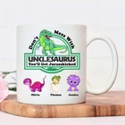 Unclesaurus Mug Father's Day Mug Mug For Uncle Gift For Father's Day Dinosaur Product Details.. This high quality 11oz. ceramic white mug has a premium hard coat that provides crisp and vibrant color reproduction sure to last for years. Perfect for all hot & cold beverages. The highest quality printing possible is used. It will never fade no matter how many times you wash it. Material: 100% Ceramic. Print both sides. Dishwasher and Microwave Safe. High Gloss + Premium White Finish. Printed in the U.S.A. Personalized & Custom. We support personalized and custom mug to add custom, when placing an order, you can add notes to the "order note" in shipping address section. Also you can contact us directly via message. Shipping Info. Ready to ship in 1 to 2 business days, All products are made-to-order and proudly printed in the United States. Shipped by USPS and DHL, You will receive your order in 5-7 days. Replace & Refund. All products are defective during shipping broken, chipped will be replaced free of charge. You are not satisfied with the product, we will refund 100% money to you. If any other issues arise, please do not hesitate to message, we would be more than happy to assist you.