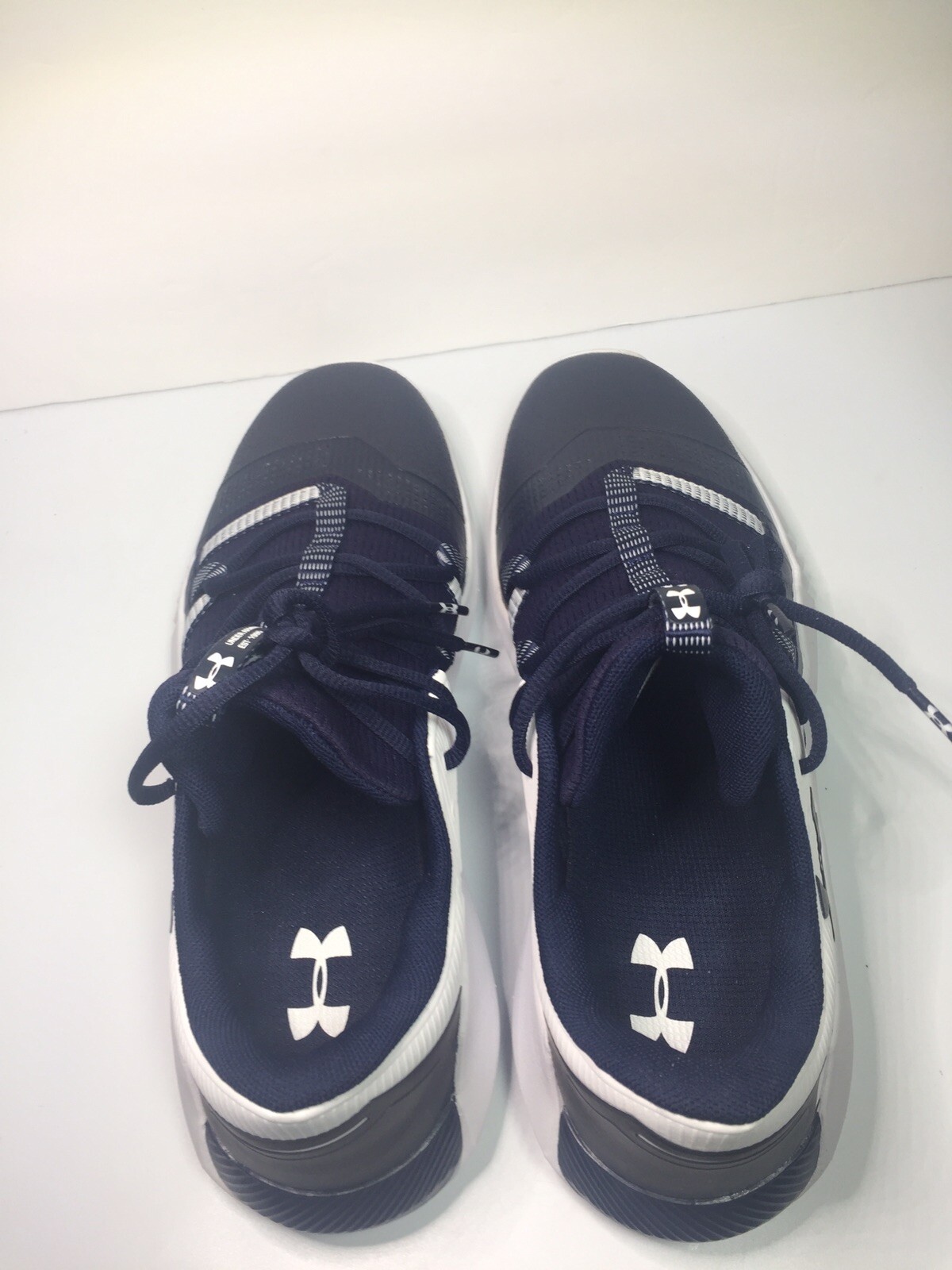 These Under Armour sneakers are a game-changer! The lightweight mesh keeps my feet cool, while the synthetic panels and webbed lacing give amazing support. The cushioned midsole is super comfy, and the TPU toe cap adds durability. No slipping, no blisters—just perfect fit and stability. Love the sleek navy design too! Great for workouts or casual wear.
