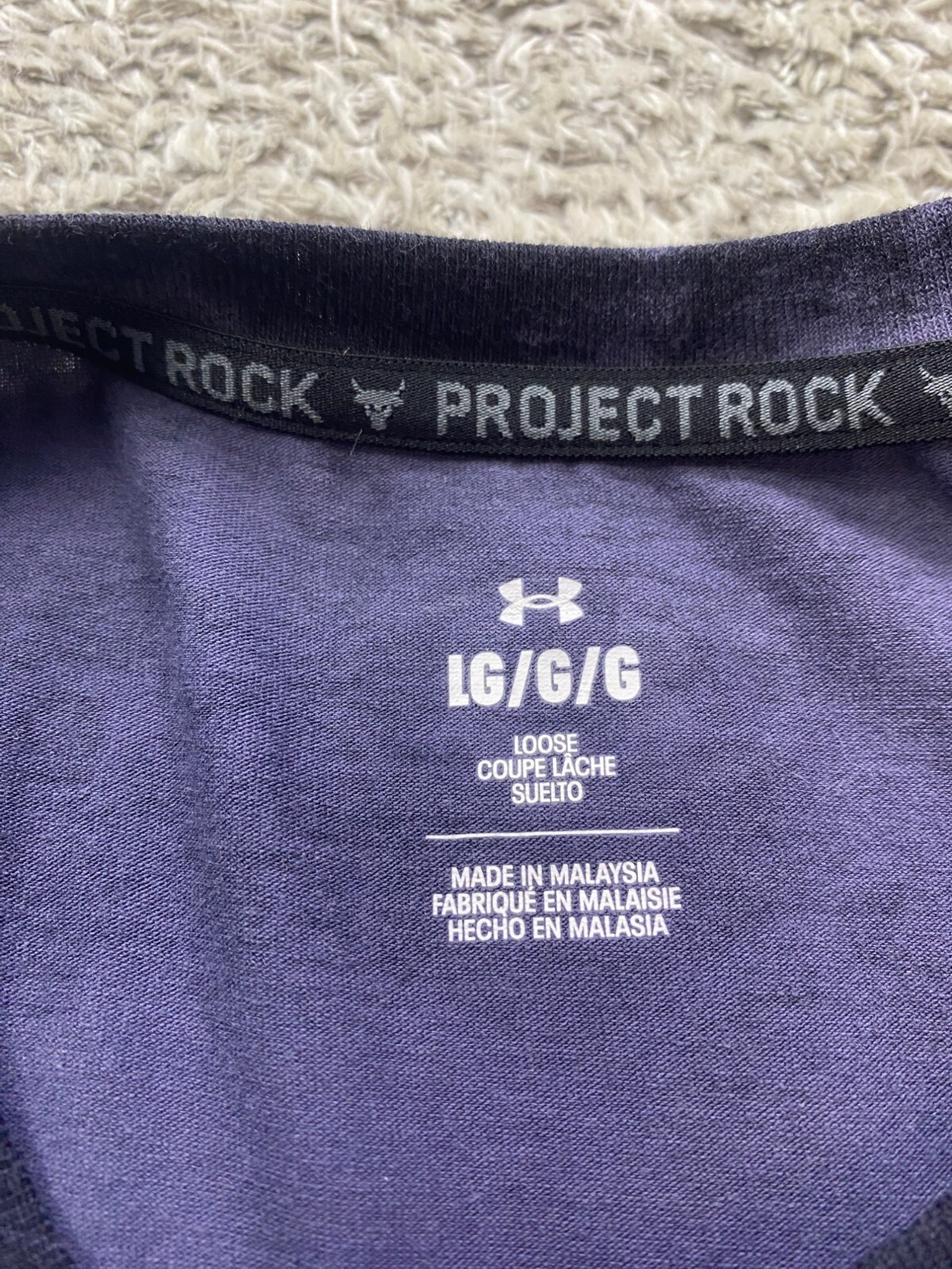 This Under Armour Project Rock shirt is a must-have! The bold tie-dye purple looks amazing, and the fit is perfect—true to size with that signature UA comfort. Even pre-owned, it’s in fantastic condition with no major flaws. Super soft, breathable, and great for workouts or casual wear. Fast shipping and awesome seller support—highly recommend!