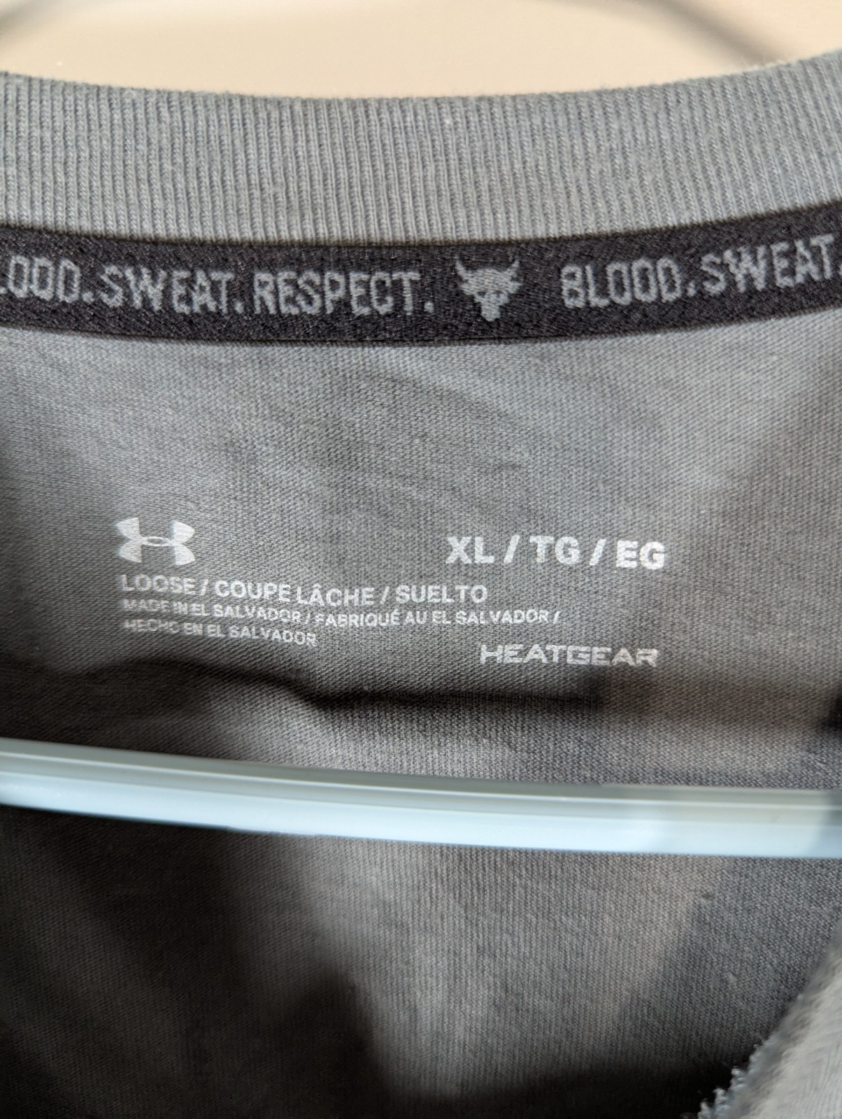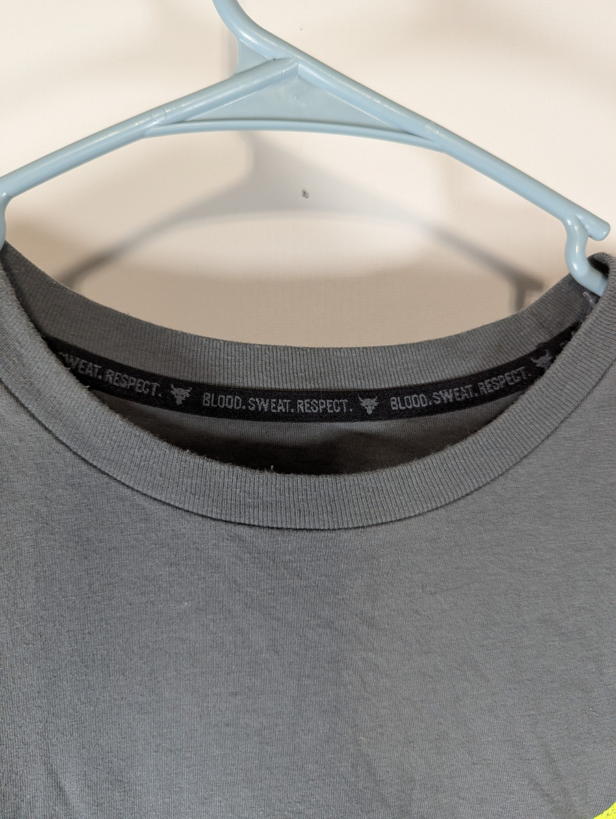 Under Armour Project Rock Logo T-Shirt Men XL Volt Gray Loose Performance. Condition is Pre-owned. Shipped with USPS Ground Advantage.