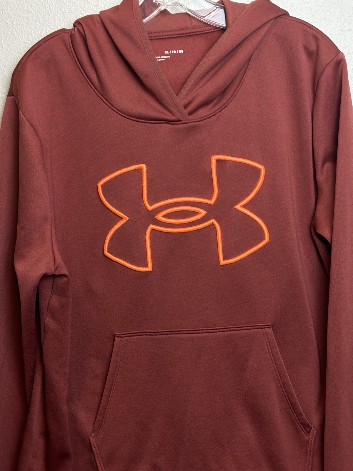 Under Armour Hoodie XL Pullover Fleece Brushed Pocket Hooded Cinna Red Size XL Measurements laying flat Pit2pit: 25” Length: 28”