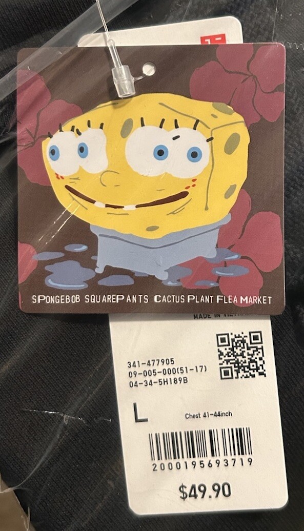 Uniqlo x SpongeBob x Cactus Plant Flea Market Black Hoodie Size L NWT