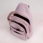 Package includes: 1 x sling backpack women Material: Nonly Color: pink purple Size: 6.7” x 4.3” x 11.8” (Length x Width x Height) Features: - Water Resistant - Multi-Compartment - Large Capacity - Hidden Anti-Theft Pocket - Light weight - With the addition of its unique color. - as a travel bag and a hiking bag - as a purse or day pack.