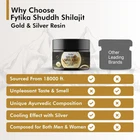 Fytika Shuddh Shilajit Gold and Silver Resin - Pure Himalayan Power for Strength, Stamina, and Energy (20g) Elevate your vitality and well-being with Fytika Shuddh Shilajit Gold and Silver Resin, a premium Ayurvedic supplement crafted from 100% authentic Himalayan Shilajit. Enriched with Swarn Bhasam (Gold Ash) and Rajat Bhasam (Silver Ash), this potent blend combines the rejuvenating benefits of Ayurvedic herbs like Ashwagandha, Safed Musli, and Gokshura to support strength, stamina, and energy. Key Ingredients & Benefits: Swarn Bhasam & Rajat Bhasam: Known in Ayurveda for their rejuvenating properties, these elements enhance the body’s endurance and vitality. Ashwagandha & Safed Musli: Renowned for reducing stress, enhancing energy, and improving stamina. Gokshura: Supports strength, muscle tone, and optimal hormonal balance. Why Choose Fytika Shuddh Shilajit Gold and Silver Resin? This unique blend harnesses the power of traditional Ayurvedic herbs to promote overall vitality, resilience, and well-being. Fytika ensures high-quality, 100% natural ingredients sourced from the Himalayas, delivering purity in every gram. Suggested Use: Consume as directed to boost energy, improve strength, and support stamina for a balanced, active lifestyle. Product Details: Weight: 20g per pack 100% Ayurvedic Formula: Pure and free from artificial additives