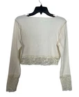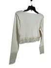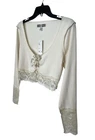 New with tags! (There is a very tiny stain that looks like it would probably come out once washed but it’s barely noticeable- as seen in last pic) -I would consider the color ivory -Ribbed -Lace hem and cuffs -Lace up cut out front with ribbon tie Armpit to armpit- 17” Shoulder to hem- 16” *Colors may be slightly different than what appears due to different screens and lighting. Please look closely at pics. I do not ship out on Saturdays or Sundays. Let me know if you have any questions! Feel free to send offers:)