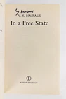 IN A FREE STATE [Signed] Author: Naipaul, V.S. Title: IN A FREE STATE [Signed] Publication: London, UK: Andre Deutsch, 1971 Edition: First U.K. Edition, First Printing Description: Octavo, 256 pages. In Very Good condition with a Very Good condition dust jacket. Gray spine with black and blue lettering. Dust jacket is wrapped in a mylar covering, price uncut "£1.75 net U.K. only", has mild shelving wear. Boards have mild bending wear along the spine head and tail edges and fore corners, and a dent along the front tail edge. Textblock has light adhesive stains along the pastedown pages and end-pages, mild creasing on pages 17 and 25, small stain on page 125, and mild shelving wear along the edges. Signed flat by V.S. Naipaul on the title page. DL consignment. Shelved in Room C. Seller ID: 1392366 Subject: Literature Welcome to the eBay store of Second Story Books! DC's Oldest Rare and Used Bookstore, Second Story Books operates two open shops in the Washington D.C. metropolitan area. We have an extensive internet presence and provide accredited appraisals member ASA. This listing was created by Bibliopolis.