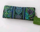 This Vera Bradley Trifold Wallet in Blue Rhapsody features a sleek design with a strap accent, perfect for women looking for a stylish accessory to carry their essentials. Made of cotton material, this wallet offers functionality with its trifold design, ideal for organizing credit cards and cash. The vibrant Multi-Color pattern adds a trendy touch to the wallet, making it a fashionable choice for everyday use. Brand new with tags, this Vera Bradley wallet combines practicality with a touch of flair.