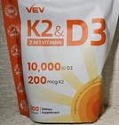 VEV K2 & D3 2in1 Vitamin Dietary supplement 300 capsules Exp. Date: 09/2026 NEW & sealed