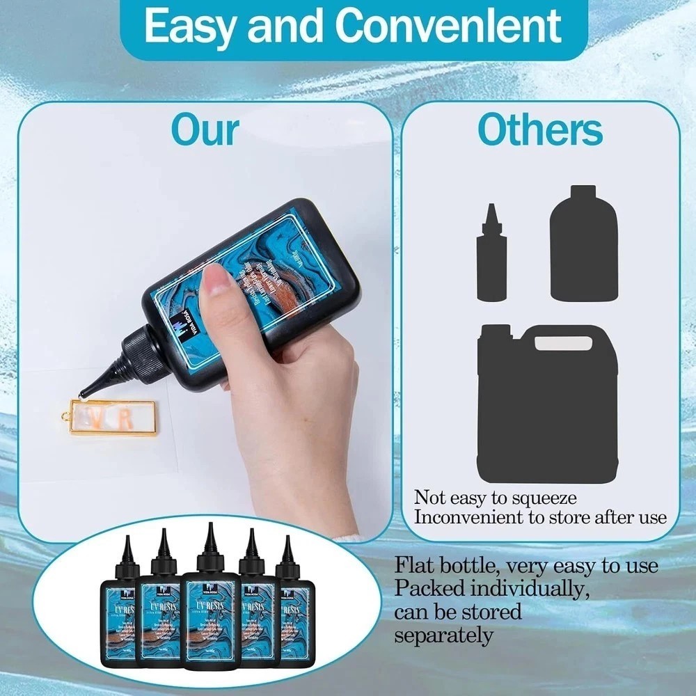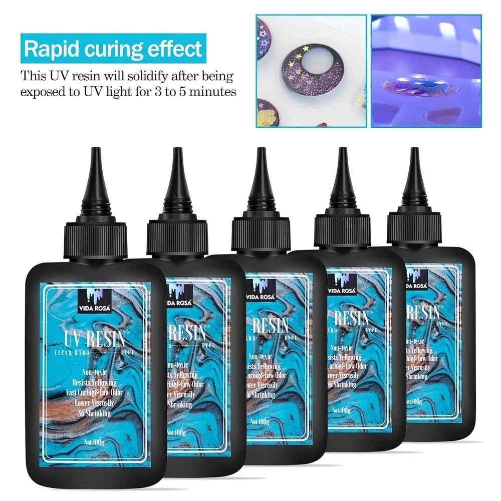 About this item ☆【NEW ARRIVAL】You will receive a brand new upgraded UV epoxy resin product, which is transparent, low odor, anti-yellowing, self-leveling and self-degassing performance, making the surface smooth and crystal clear. This set includes two bottles of 100g UV resin. Very suitable for jewelry making and DIY projects. ☆【Fast Flowing & Faster Curing】Our UV epoxy resin is of good fluidity, can be fully cured in 2 minutes under a 36W UV lamp (90 seconds on the top, flip over, and 30 seconds on the back if possible) -- shorter curing time, lower power needed. This resin can also cure in direct sunlight. Important note: After curing, allow the cured UV resin to cool for an additional 1-2 minutes before handling. ☆【Low Shrinkage & Low Viscosity】Our UV resin is with a low shrinkage rate, less than 2%, and the resin has a low viscosity of 1000-1100cps, very suitable for complex molds, achieving a smooth and flawless surface. ☆【Operation Tips】① Store in a cool place. ②Before use, try a small amount to master the skills and techniques. ③The surface must be kept clean and dry when bonding. ④UV resin curing needs to be completed under the condition of ultraviolet light, please use a special UV resin lamp to cure. ⑤Do not touch the UV light immediately after irradiation, wait for it to cure and cool before touching to avoid leaving fingerprints. ☆【Customer Service Satisfaction Guarantee】:We not only provide you with high-quality resin art product materials, but also provide 24-hour timely after-sales service reply. Please feel free to contact us if you have any doubts during using, we will ensure you a satisfactory result. Product Description VIDA ROSA UV RESIN - New Excellent Formula , high quality VIDA ROSA new upgrade UV resin is the ultimate crafting material! It's crystal clear, non-sticky, and cures quickly under UV light. Plus, it won't yellow over time like other resins. Perfect for jewelry making and many other creative projects. Click to play video Let's embark on a magical journey Unleash Your Creativity — The Magical World of Resin Crafts In this video, we'll take you on a journey through the world of resin. From preparing your resin to mixing and pouring, and finally showcasing your beautiful finished pieces, we'll guide you every step of the way. Whether you're a beginner just starting out with resin crafts or an experienced artist looking for new inspiration, come join us on a creative journey as we explore the endless possibilities of resin and these incredible additives. Are you ready to unleash your creativity? The light time may need to be extended due to the different thickness of the mold. Please ensure that both sides of the mold are exposed to sufficient UV light time. Please wait for the finished product to cool completely before demolding to avoid leaving fingerprints or burns. Shipping We offer FREE shipping on all orders! We ship within Three business days of payment, usually sooner. We use a selection of shipping services such as UPS, FedEx, USPS etc. We only ship to the lower 48 states, no APO/FPO addresses or PO Boxes allowed. Local pickups and combined shipping options are not provided at this time. Return You can return a product for up to 30 days from the date you purchased it. Any product you return must be in the same condition you received it and in the original packaging. Please keep the receipt. Payment We accept payment by any of the following methods: PayPal Please pay as soon as possible after winning an auction, as that will allow us to post your item to you sooner! Feedback Customer satisfaction is very important to us. If you have any problem with your order, please contact us and we will do our best to make you satisfied. Contact Us If you have any queries, please contact us via ebay. We usually respond within 24 hours on weekdays. Please visit our eBay store to check out other items for sale! Thank you for shopping at our store. Disclaimer We are working with different suppliers in USA to deliver the item to your doorstep. If you have any issues regarding the item, Feel free to ask.