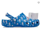 Elevate your casual style with these Vineyard Vines Classic Clog slip-on shoes. Featuring a solid blue color with a logo accent, these shoes are perfect for travel, activewear, and casual occasions. The shoes have a flat heel style with a heel height of under 1 inch and a low top shoe shaft style. Made with rubber fabric type and a synthetic lining material, these shoes are lightweight, breathable, and comfortable. The outsole material is also made of rubber, making it slip-resistant and perfect for activities such as fishing and going to the beach. These shoes are available in size 9 for women and size 7 for men. Get your hands on these stylish and versatile crocs from Vineyard Vines today! **RETAIL $70