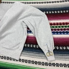 ***tag says medium but fit would be better for a small There is cracking on the graphic. A blue ink stain on the wrist area, light pink stains on the upper left shoulder area and wrist. Also minor rip/fray on upper wrist cuff. Please check measurements, especially sleeve length (they are short), before purchasing. Thanks!