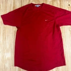 This vintage 90s Nike Dri-FIT T-Shirt is a must-have for any athletic men's wardrobe. The shirt is made of breathable and easy-care cotton material, making it perfect for all seasons. The red color and solid pattern give it a classic look, while the embroidered Nike logo adds a touch of sporty style. The shirt is a size XL and has a crew neck and short sleeves, making it comfortable for any activity. It was manufactured in Malaysia between 1990-1999 and is a part of the Nike Dri-FIT product line. This shirt is perfect for anyone who loves vintage clothing or wants to add a touch of 90s style to their wardrobe. SKU: KG-14-86