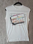 SHOCKWAVES #4 DESIGNED EXCLUSIVELY FOR LEVIS BY LASE ART 1983 PLEASE REVIEW PICTURES FOR BETTER DESCRIPTION OF THE ITEM. STAIN ON COLLAR AND A SLIT ON THE SLEEVE/SLEEVLESS