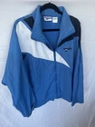 VTG Reebok Windbreaker Jacket Mens Large Zip Blue Big Logo Grail Nylon 90s Stain on the front