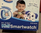 The VTech My First Kidi Interactive Smartwatch in blue is the perfect first smartwatch for young tech explorers! With a vibrant touch screen, this kid-friendly watch features interactive games, educational activities, and a playful design to keep kids entertained and engaged. It’s easy for little ones to navigate, helping them learn time-telling, explore fun challenges, and enjoy mini-games that boost their cognitive skills. Plus, it's brand new and ready for action! This durable smartwatch is ideal for curious minds, making it a fantastic gift for learning and play on the go! FEATURES: This wrist pup helps keep kids and mom on track with routine reminders for potty training, nap time and more. Explore time-telling and choose from 20 clock faces; a friendly woof-woof announces the hour. Feed, walk and groom the digital dog using the touch screen; train them to do 20 different tricks. Intended for ages 3-5 years. Built-in, rechargeable lithium ion battery included. Charge device using included micro-USB cable only and not a third-party adapter This playful digital pet smartwatch includes routine reminders, a virtual dog and games. Makes a great birthday present or holiday gift for preschoolers
