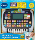 VTech Little Apps Light-Up Tablet Product Details Product Dimensions: 1.26 x 9.29 x 7.32 inches Item Weight: 14.4 ounces Item model number: 80-551700 Manufacturer recommended age: 24 months - 5 years Batteries: 2 AA batteries required. (included) Release date: January 11, 2022 Department: Unisex-Adult Manufacturer: VTech Brand: VTech Model Name: Little Apps Memory Storage Capacity: 8 GB Screen Size: 4 Inches Display Resolution Maximum: 1024x600 Add early math skills with number, order and counting games; explore days of the week and daily activities Enhance language skills with four letter games that teach letters, words and spelling Meet the friendly lion and answer his questions about animal sounds and more Play music and sounds with piano keys and letter buttons; change the LED screen from red to purple, blue or pink, and watch the tablet glow Intended for ages 2–5 years; requires 2 AA batteries; batteries included for demo purposes only; new batteries recommended for regular use Brighten playtime and discovery with the Little Apps Light-Up Tablet™. Playful animations and sound effects pair with 12 learning activities to engage little learners. Explore apps and play modes that teach letters, words, numbers, counting, puzzles and more. Keep on track with daily routines and weekly activities in the My Calendar app, just like your favorite adults do. Play songs and sound effects in the My Piano app while pressing the piano keys. Have a conversation with the friendly lion in the Talking Pal app. Respond to questions about what you like and try to guess the animal sounds. Choose from four LED screen colors, then watch the tablet glow! Take this tablet on the go to keep playful exploration right at hand. Intended for ages 2–5 years. Requires 2 AA batteries. Batteries included for demo purposes only. New batteries recommended for regular use.