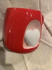 This beautiful mug is perfect for any occasion, whether you're drinking hot or cold beverages. Its unique heart shape and red color make it a great addition to your collection. The design is hand-painted and features the Candy Hearts franchise. Made of high-quality ceramic and porcelain, this mug is both microwave and dishwasher safe. It has a handle and can hold up to 20oz of your favorite drink. Its size is medium, with a height of 4 inches and a width of 3.5 inches. This original, art deco style mug is sure to impress your guests.