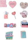 The product is a set of 10 diary, planner, or scrapbook stickers featuring hearts, cats, books, reading, and bookish themes.
