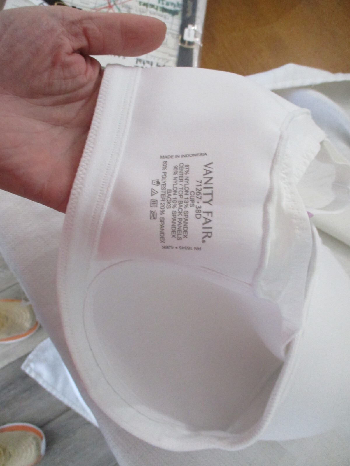 YOU ARE LOOKING AT new with tags vanity fair 38d bra new 38 d white no wire padded $46 beauty back side smooth SMOKE AND PET FREE HOME. USA SHIPPING ONLY. PLEASE CONTACT ME THROUGH E-BAY ONLY. SEE MY OTHER ITEMS IN AUCTION. I AM HAPPY TO COMBINE SHIPPING. THANKS FOR LOOKING. PLEASE ASK QUESTIONS. I TRY TO DESCRIBE ACCURATELY AND WANT YOU TO BE HAPPY WITH PURCHASE SO IF ANY PROBLEMS, PLEASE CONTACT ME.