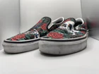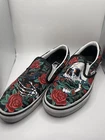 Vans slip on Womans Size 6.5 Mens 5. Please see photos! Ask any questions! Step up your footwear game with the Vans Classic Slip-On Raven Rose Skulls Sneakers. Fashioned with a vibrant multicolor palette, these sneakers are a standout piece that seamlessly blend style and comfort. The durable canvas upper, complemented by the iconic Vans logo accents, offers a timeless look while ensuring performance for all your activities—skateboarding, walking, or simply school life.Designed for both men and women, these shoes come in a versatile size 6.5/5 and feature a low-top shaft for a casual fit. The fabric lining and cushioned insole provide comfort throughout the day, while the sturdy rubber outsole offers reliable traction. Whether for activewear or casual outings, these sneakers are a practical choice for any season.