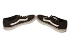 Elevate your casual style with these classic Vans Old Skool sneakers. The black and white colorway with a solid pattern and low top shoe shaft style makes them a versatile choice for any occasion, from walking to school to even skateboarding. The lace-up closure ensures a secure fit, while the cushioned, comfortable, and breathable features make them ideal for all-day wear. These unisex athletic shoes are made with canvas upper material and are part of the Vans Old Skool product line. They come in women's US size 7 and are perfect for those who want a colorful and classic look. Get ready to step out in style with these Vans Old Skool sneakers, suitable for any season - winter, summer, fall, and spring.