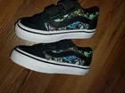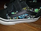 Vintage Vans style for the little one. Made with signature suede and canvas uppers featuring a glow-in-the-dark galaxy print and the signature waffle outer sole. Easy strap closures create a toddler friendly fit on this iconic side stripe shoe. Missing the Van's logo tag. See photo.