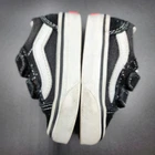Pictures are of the actual item up for sale. Sold as pictured. These Vans Old Skool toddler shoes in size 3 are black sneakers featuring reflective stripes. They have a hook & loop closure and a low top shoe shaft style. The shoes are designed for unisex babies and toddlers, with a colorful and classic skater theme. Made of canvas and suede with a rubber outsole, they are suitable for walking and school activities in various seasons.