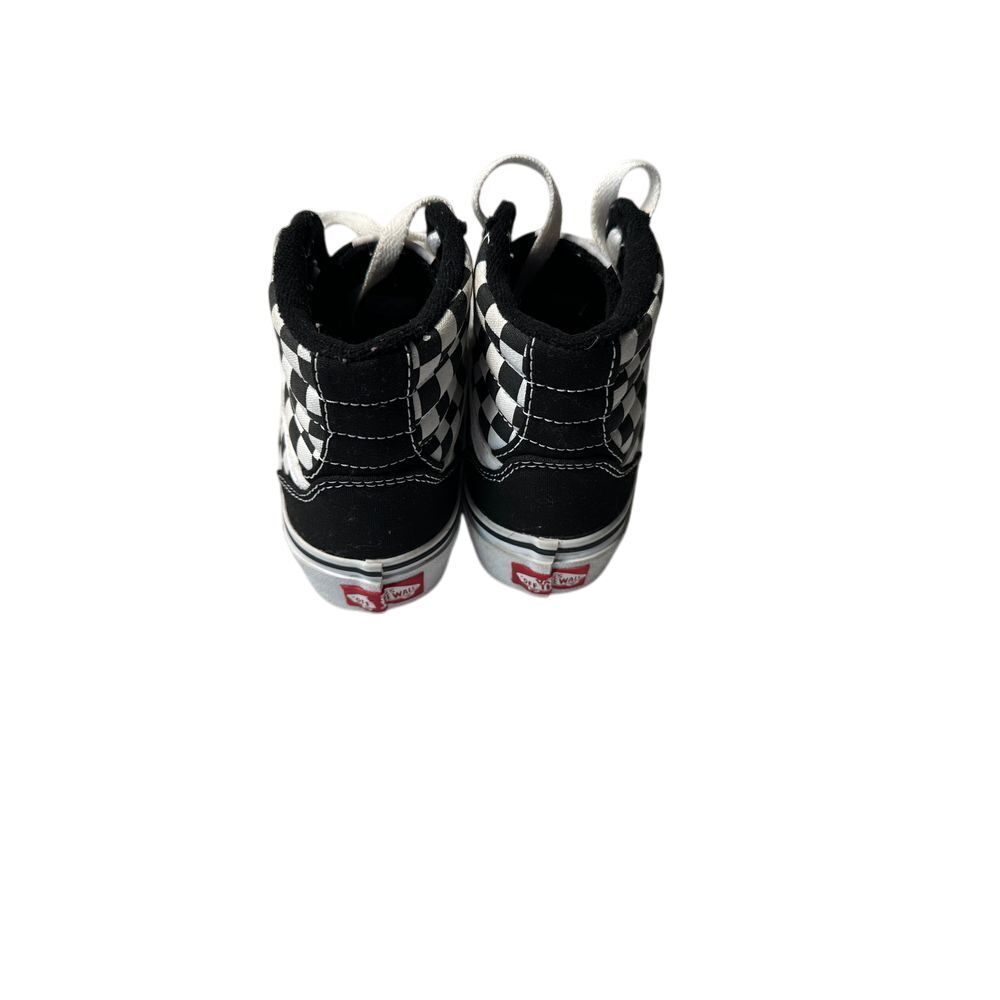 Classic Vans SK8-Hi sneakers featuring the iconic checkerboard pattern on the sides. These high-top sneakers combine style and comfort with their durable canvas and suede construction, padded collars, and signature waffle outsole. Perfect for skateboarding, casual outings, or adding a retro street-style edge to any outfit. The timeless black and white colorway makes these versatile for any casual look. Color: Multicolor Performance/Activity: Skateboarding, School, Walking, Casual Wear, Street Style Style: High-Top Sneaker Type: Athletic Model: Vans SK8-Hi Checkerboard Closure: Lace Up Upper Material: Suede Features: High Top, Waffle Outsole, Padded Collar, Checkerboard Pattern, Skateboarding Design Keywords: vans sk8 hi, checkerboard vans, high top sneakers, skate shoes, black white sneakers, classic vans, kids sneakers, youth shoes, skateboarding shoes, canvas sneakers