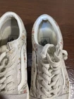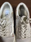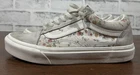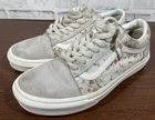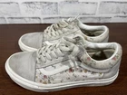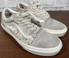 These Vans sneakers feature a floral pattern in gray and white, with a lace-up closure and cushioned comfort. They are designed as Old Skool style sneakers for women in US size 7.5 (UK size 5). The canvas upper material is accented with the Vans logo, sitting on a rubber outsole. Ideal for casual, activewear, or workwear, these shoes can be worn in all seasons for walking, school, or skateboarding. Very good preowned condition with normal preowned wear. The laces are a bitt dirty. The insoles, soles, uppers and collars are in great shape as pictured. Please see all photos. For clothing specifically, see photos for all measurements and/or any issues if applicable. Pay close attention to the measurements as the size of the garment may quite possibly be different than the actual measurement(s) due to washing, shrinkage, or stretching as these are used clothes. The size in the title is the size on the tag of the garment. See photos for measurements of actual measurements as they may differ. ALWAYS CHECK THE MEASUREMENTS IN THE PHOTOS. This will remove any questions on measurements as well as always cover the possibility of human error in the listing(s) in the case of a typo or oversight. All clothing and shoes have been washed/cleaned, and comes from a smoke free environment. If shoe trees appear in the photos, they are for photography purposes only to illustrate how the shoes look filled out, and are not included. I am available for questions. I accept or negotiate reasonable offers. Have an amazing day. Thank you.