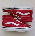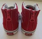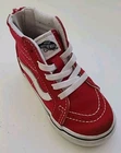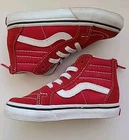 Step up your little one's shoe game with these Vans Toddler Shoes. These high-top sneakers feature a classic red suede upper and a logo accent on the side. The zipper closure makes them easy to put on and take off, while the suede outsole provides a comfortable feel. Perfect for both casual and activewear occasions, these Vans Off The Wall sneakers have a unisex baby & toddler department. The classic skate theme and old school design make them a must-have for any toddler's wardrobe. Get your hands on these stylish and comfortable Vans Sk8-Hi sneakers today!