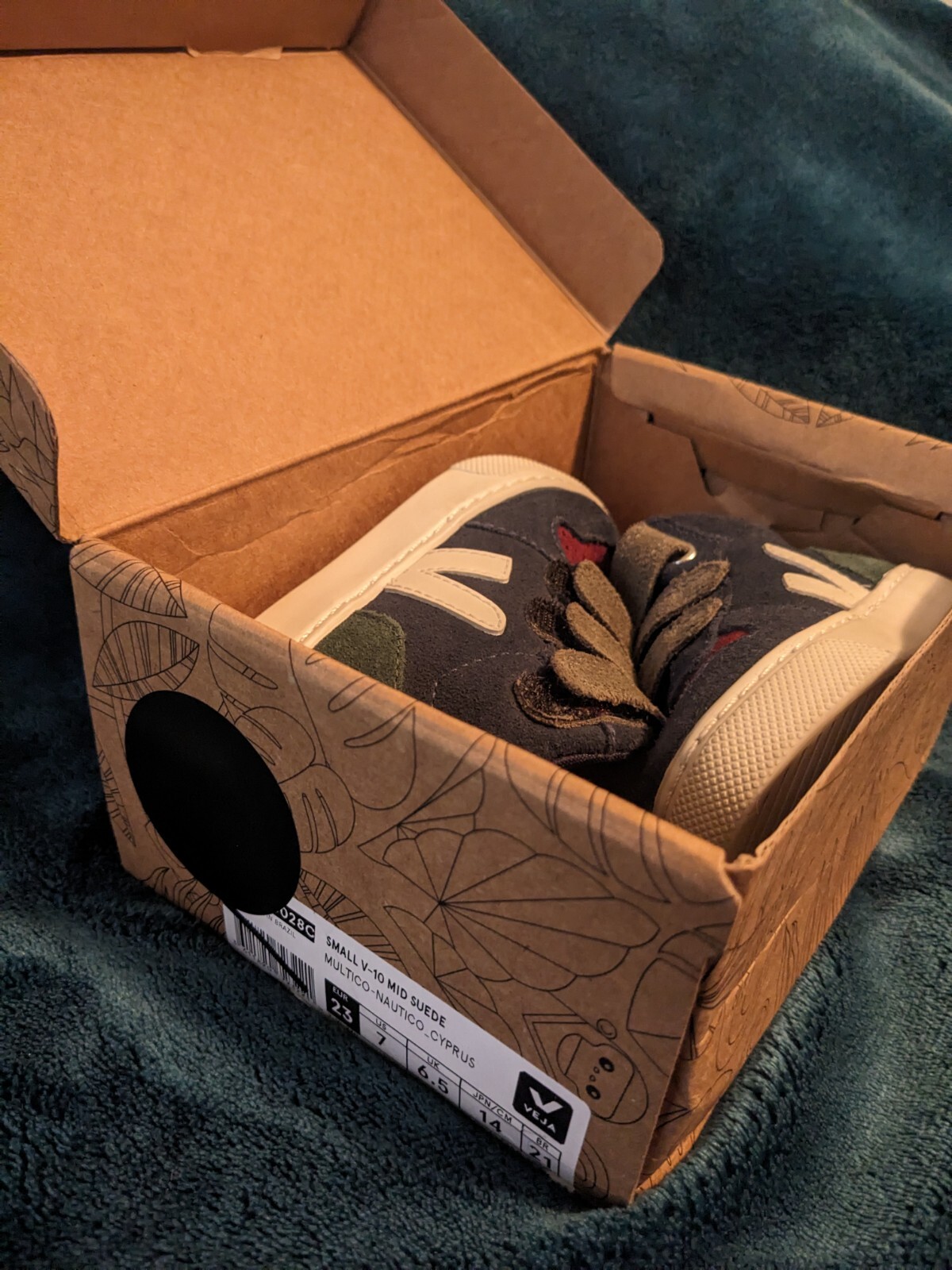These adorable Veja suede toddler shoes are in fantastic condition—barely worn, just a few outings to church! They still look fresh, come with the original box, and are a steal compared to the $140 retail price. Perfect for little feet needing stylish, comfy kicks!