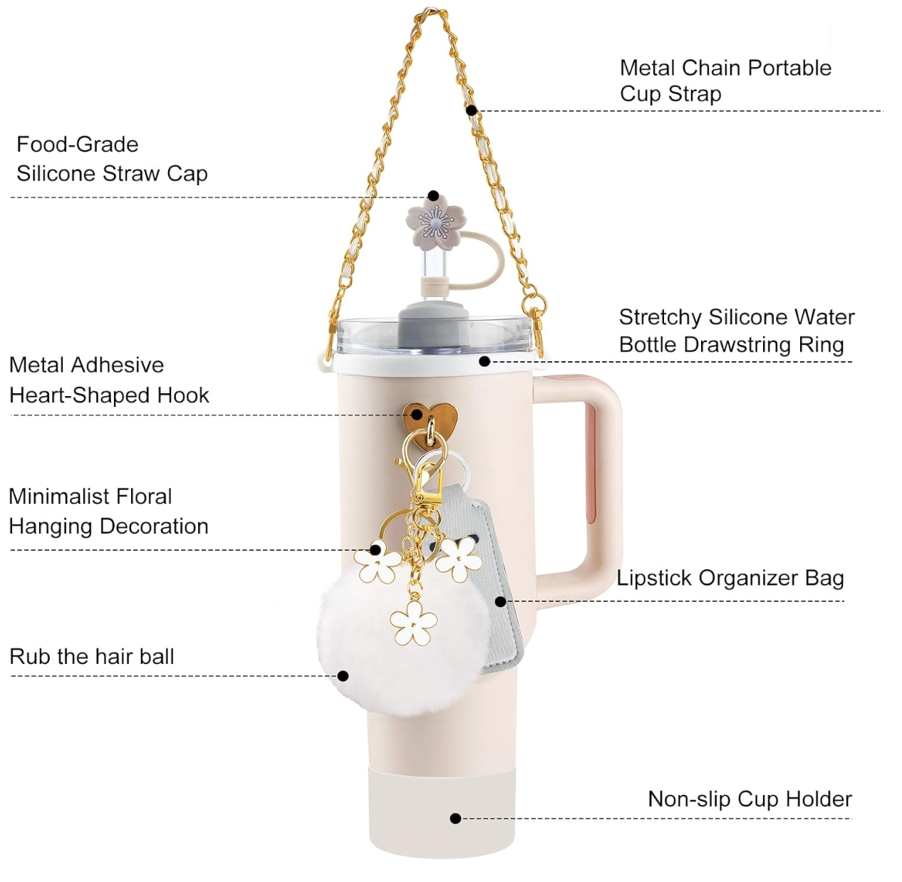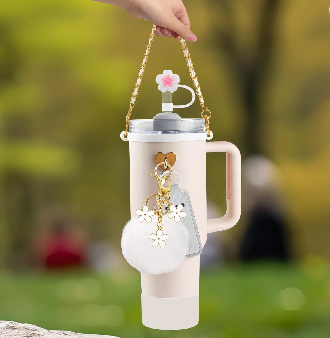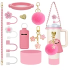Colors available: Black, Blue, Green, Purple, Pink, Rose, and white (when purchased message the desired color) ALL Colors same price!!! 【11 PCS Tumbler Accessories Set】 Velaco cup accessories for Stanley 30/40 oz tumblers with handle. Includes water bottle handle strap, silicone straw toppers, cup boot, and cute keychain charms. 【Package Includes】 1 handle strap, 1 drawstring ring, 4 silicone straw covers, 1 flower keychain, 1 pompom ball, 1 heart hook, 1 silicone cup boot, 1 lip balm sleeve. 【Food-Grade Silicone】 Durable, reusable, and dishwasher-safe straw covers that are airtight, dustproof, and splashproof—perfect for daily use and outdoor activities. Encourages kids to drink more water too! 【Cute & Practical】 Stylish designs that protect your drinks from dust and spills while adding fun personality to your tumbler. 【Customer Satisfaction】 We care about your experience. Contact us anytime, and we’ll resolve issues within 24 hours. Note: Straws not included.
